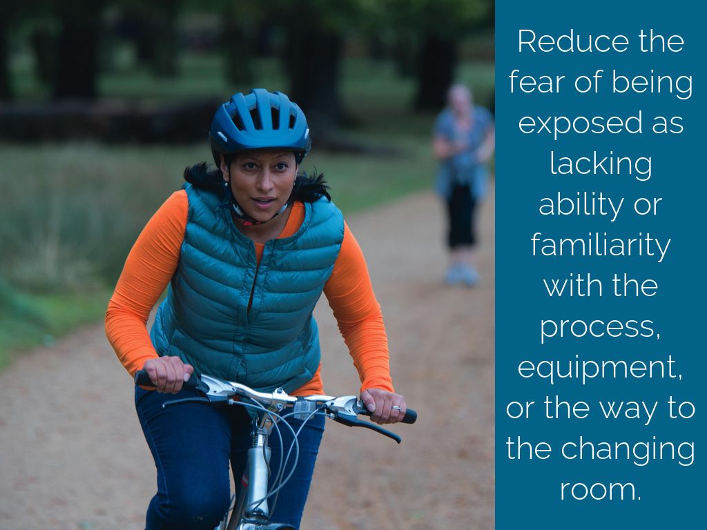 Reduce the fear of being exposed as lacking ability or familiarity with the process, equipment, or the way to the changing room.