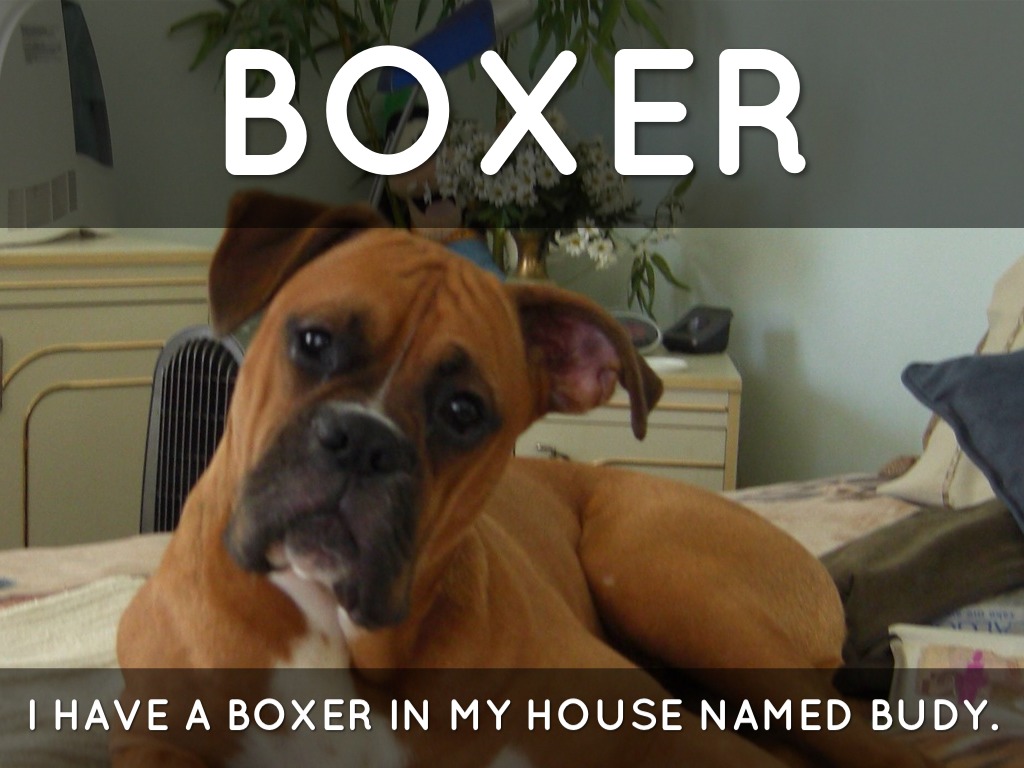 I HAVE A BOXER IN MY HOUSE NAMED BUDY.