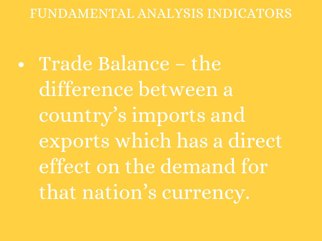 - Trade Balance – the difference between a country’s imports and exports which has a direct