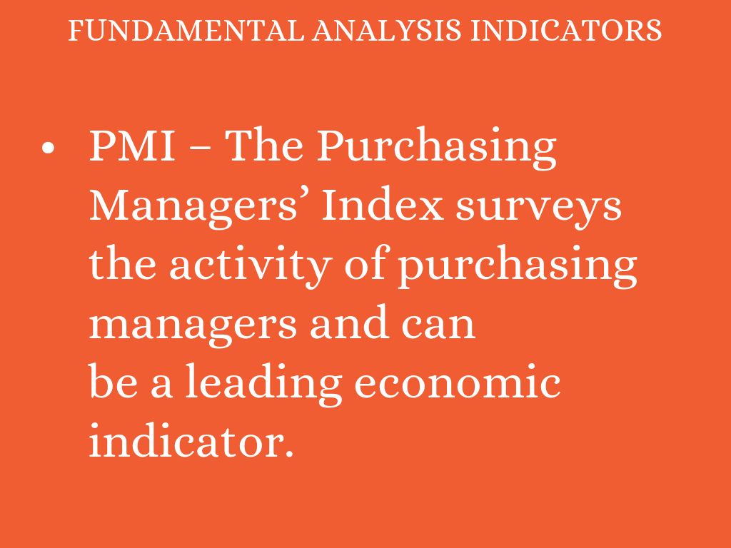 - PMI – The Purchasing Managers’ Index surveys the activity of purchasing managers and can
