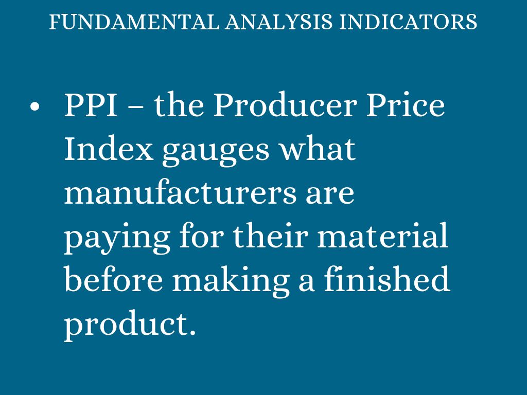 - PPI – the Producer Price Index gauges what manufacturers are paying for their material