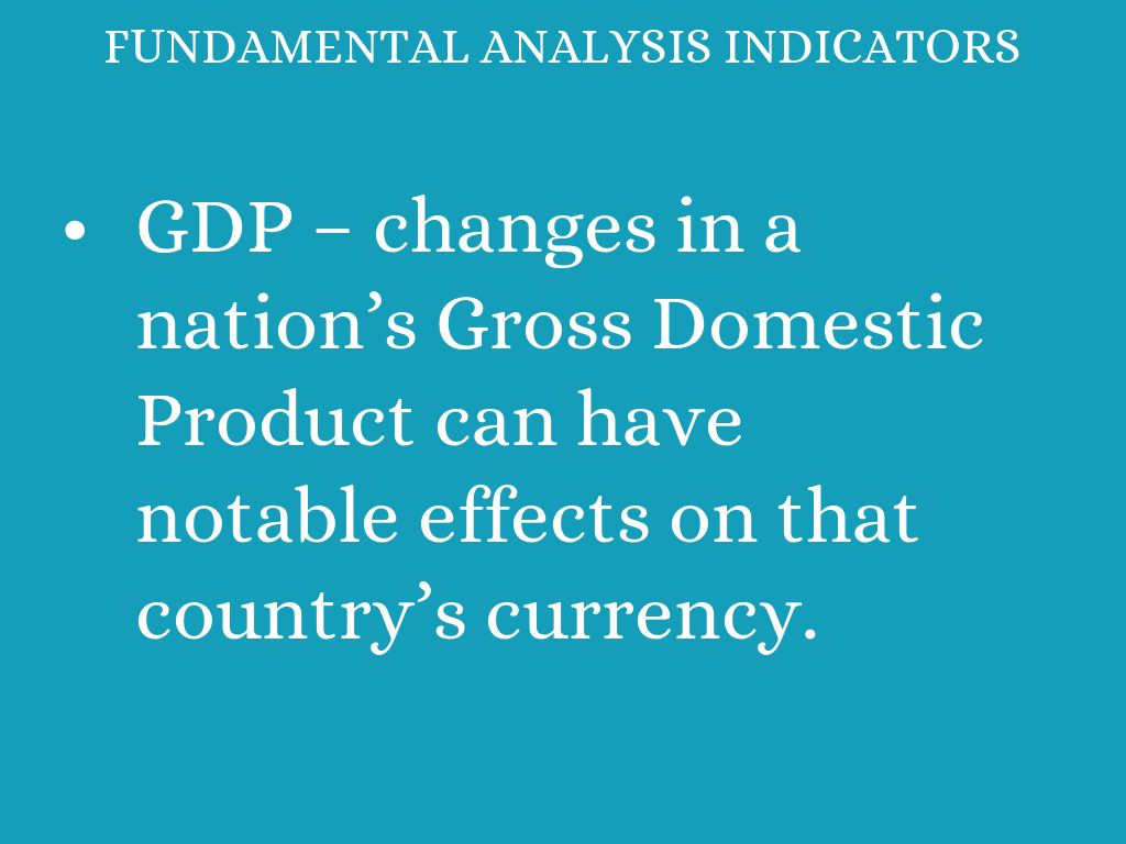 - GDP – changes in a nation’s Gross Domestic Product can have notable effects on that