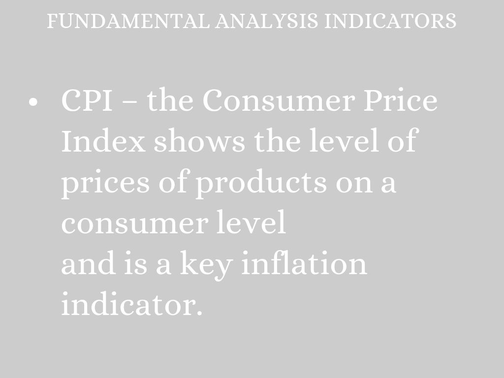 - CPI – the Consumer Price Index shows the level of prices of products on a consumer level