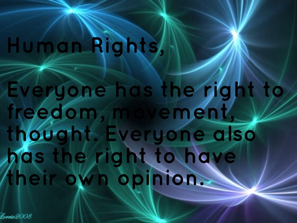 Everyone has the right to freedom, movement, thought. Everyone also has the right to have their own opinion.