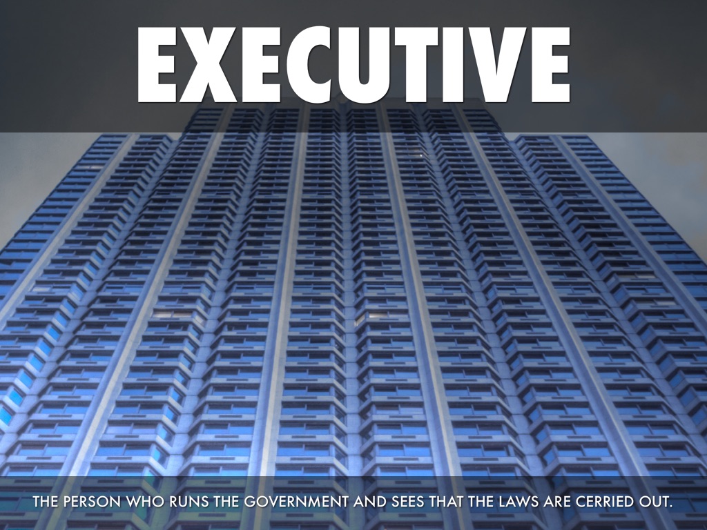 THE PERSON WHO RUNS THE GOVERNMENT AND SEES THAT THE LAWS ARE CERRIED OUT.