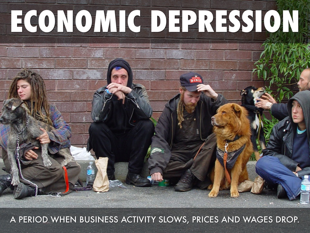 A PERIOD WHEN BUSINESS ACTIVITY SLOWS, PRICES AND WAGES DROP.