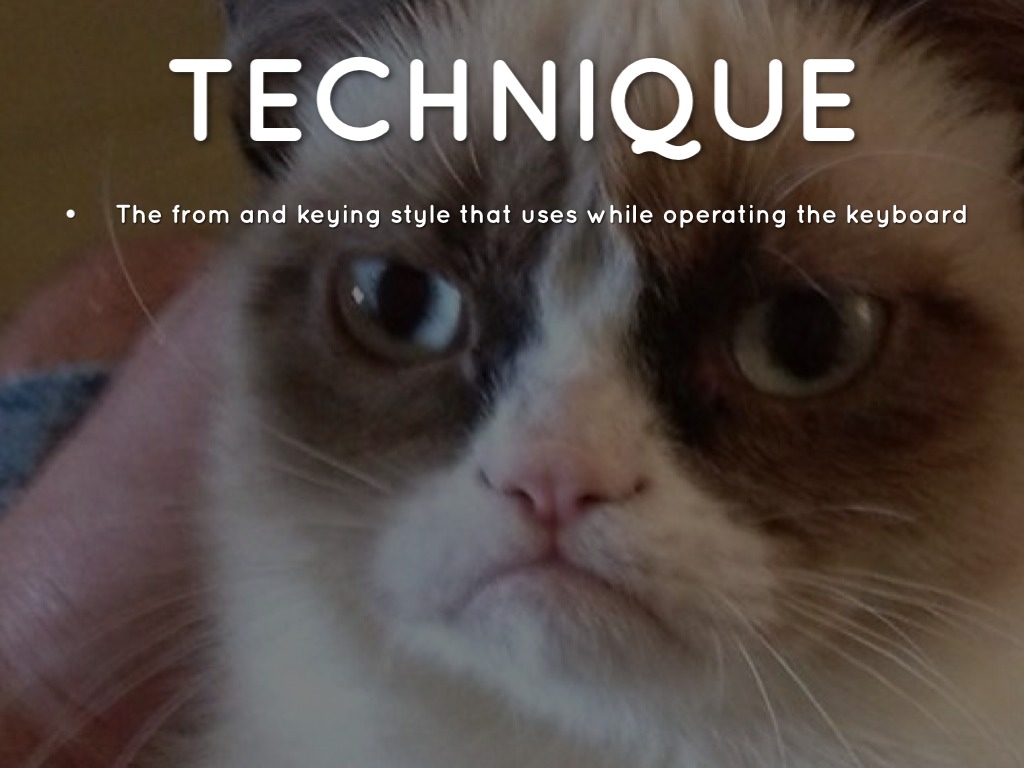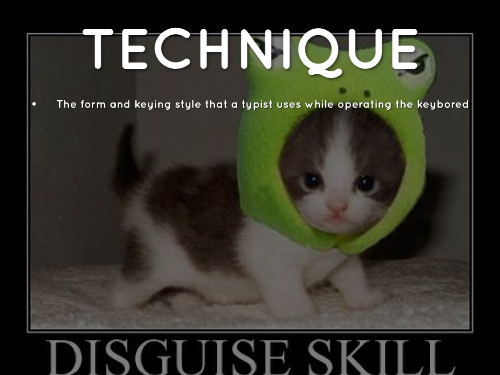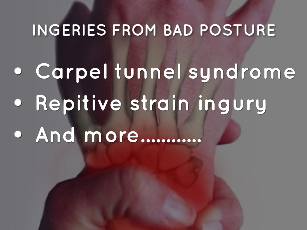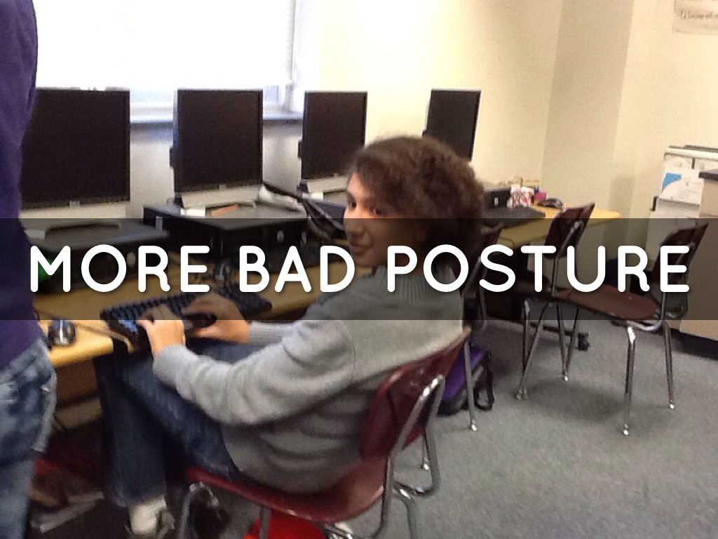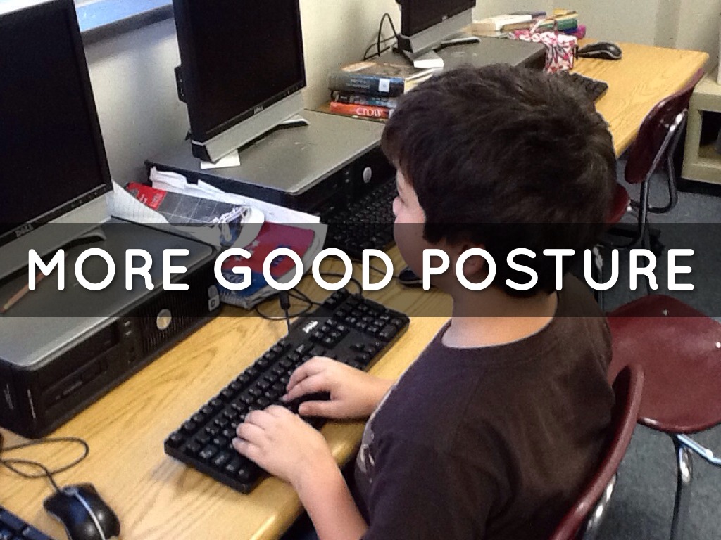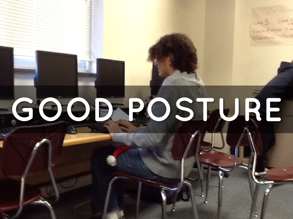 The way the typist sits the way the typist arms,legs, wrist ,fingers and feet are placed.
