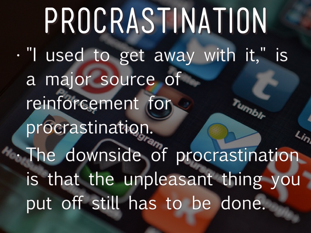 "I used to get away with it," is a major source of reinforcement for procrastination.