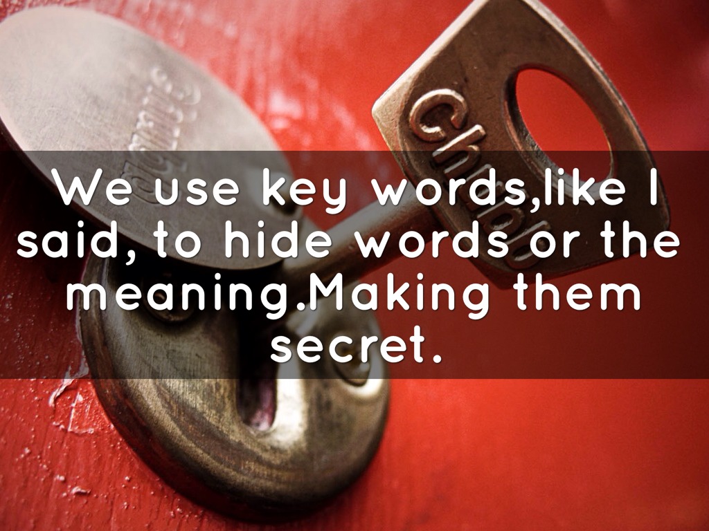 We use key words,like I said, to hide words or the meaning.Making them secret.