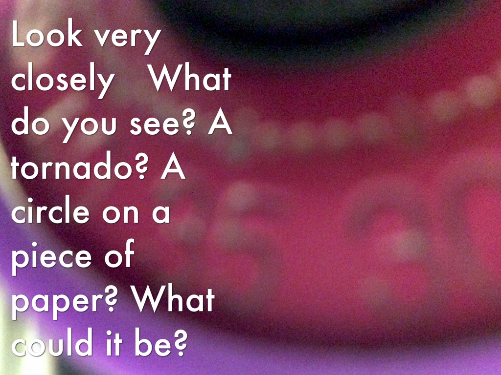 Look very closely What do you see? A tornado? A circle on a piece of paper? What could it be?