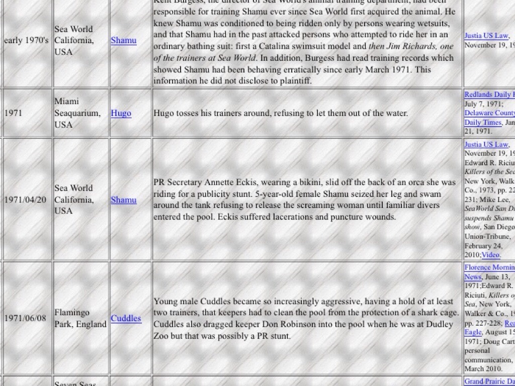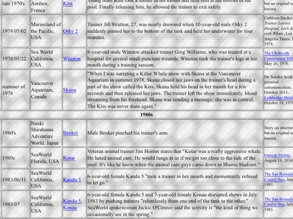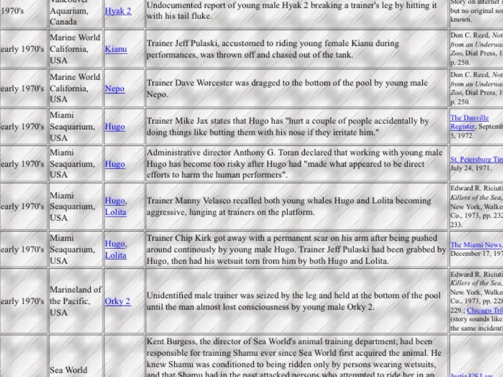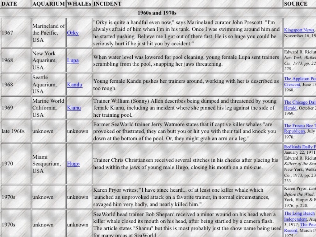 During the 60s and 70s nearly 70 whales were taken from the wild