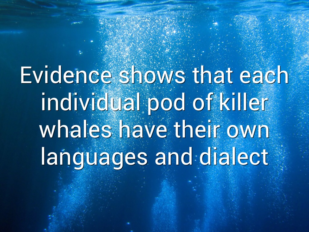 Evidence shows that each individual pod of killer whales have their own languages and dialect