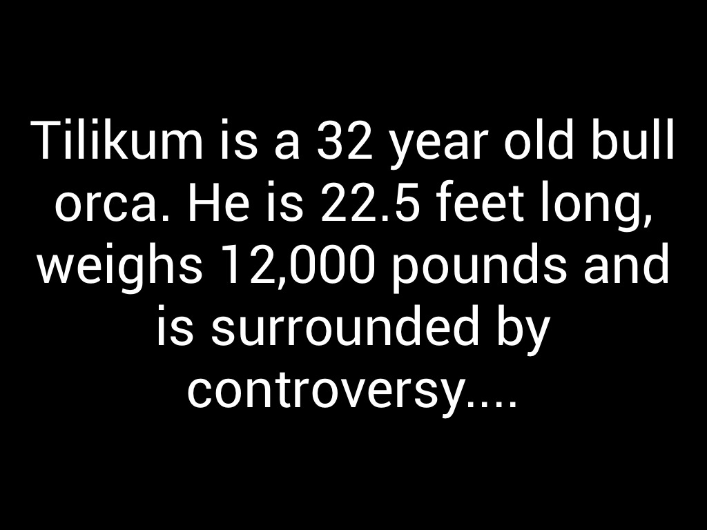 Tilikum is a 32 year old bull orca. He is 22.5 feet long, weighs 12,000 pounds and is surrounded by controversy....