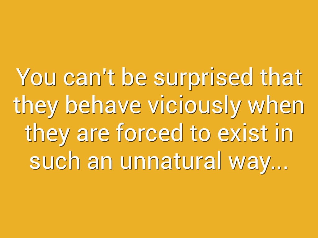 You can't be surprised that they behave viciously when they are forced to exist in such an unnatural way...
