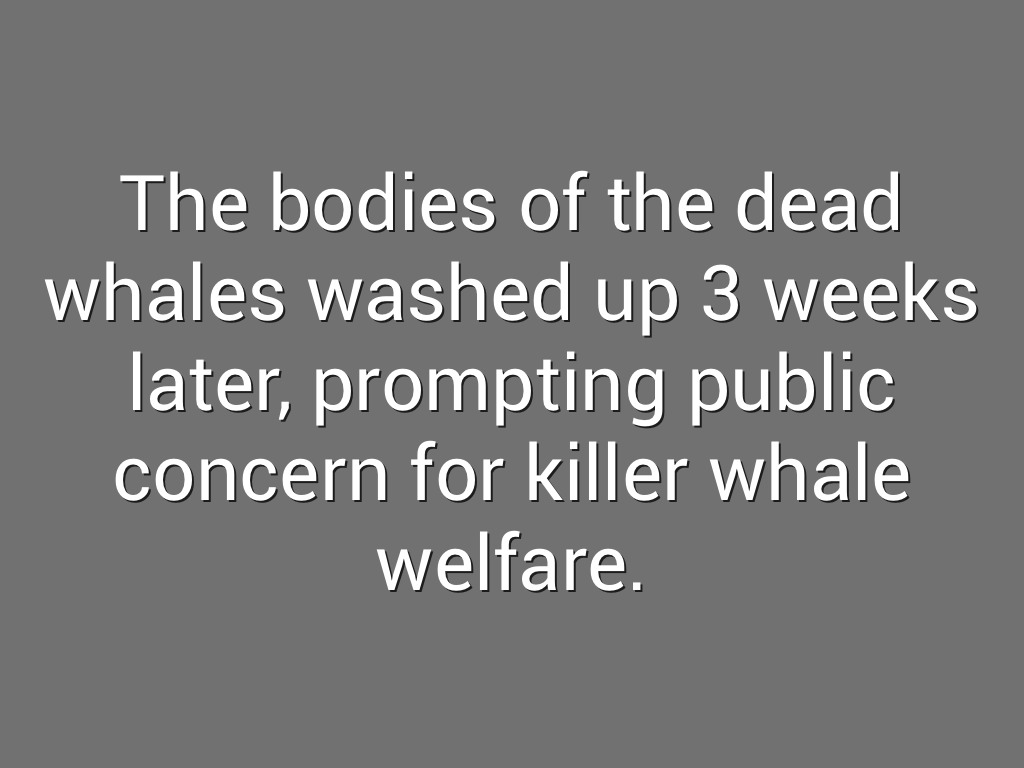 The bodies of the dead whales washed up 3 weeks later, prompting public concern for killer whale welfare.
