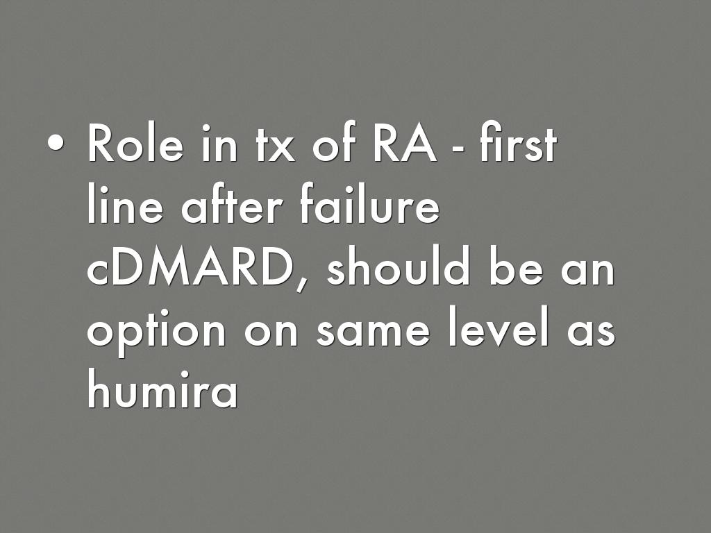 Role in tx of RA - first line after failure cDMARD, should be an option on same level as humira