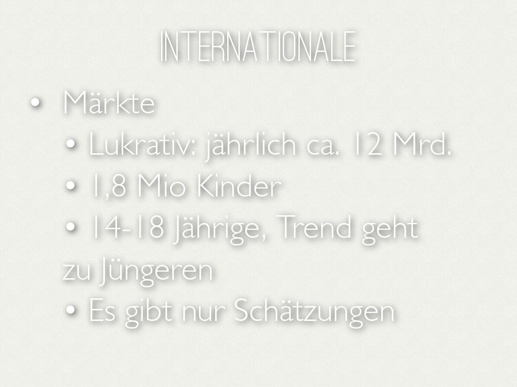 Märkte • Lukrativ: jährlich ca. 12 Mrd. • 1,8 Mio Kinder • 14-18 Jährige, Trend geht zu Jüngeren • Es gibt nur Schätzungen