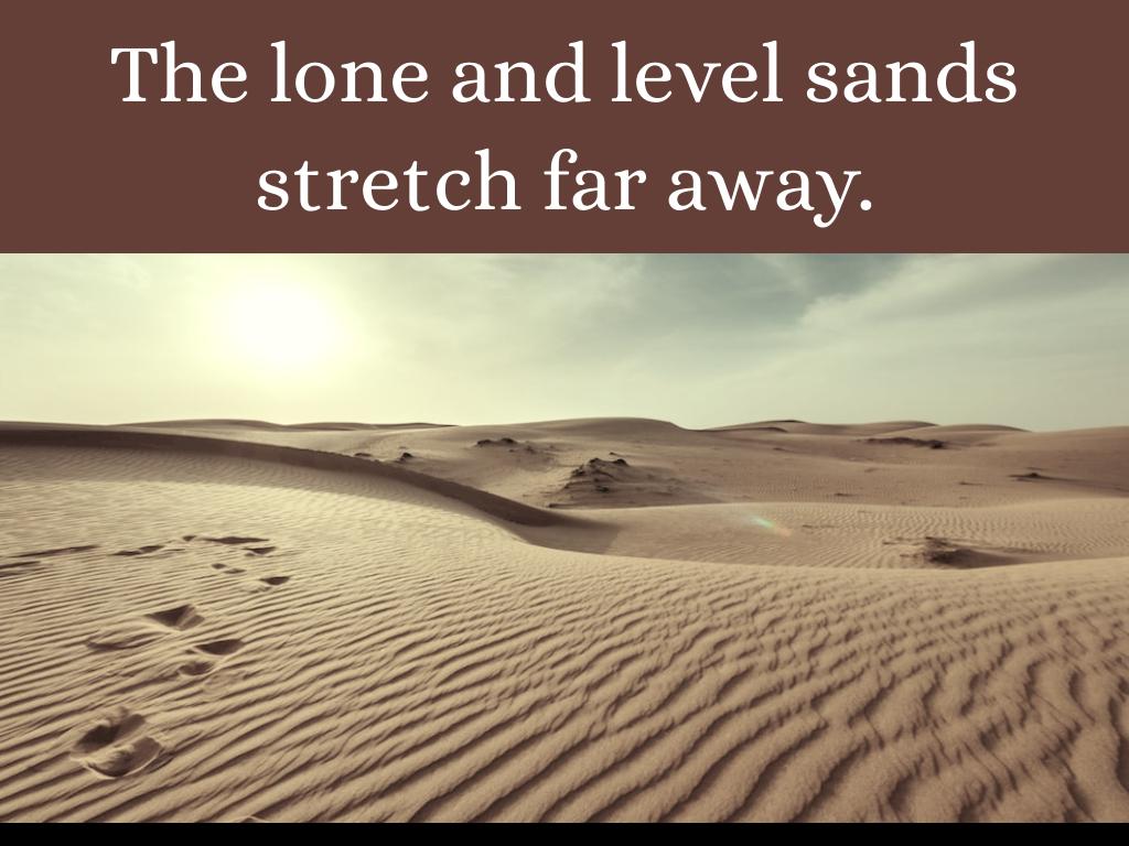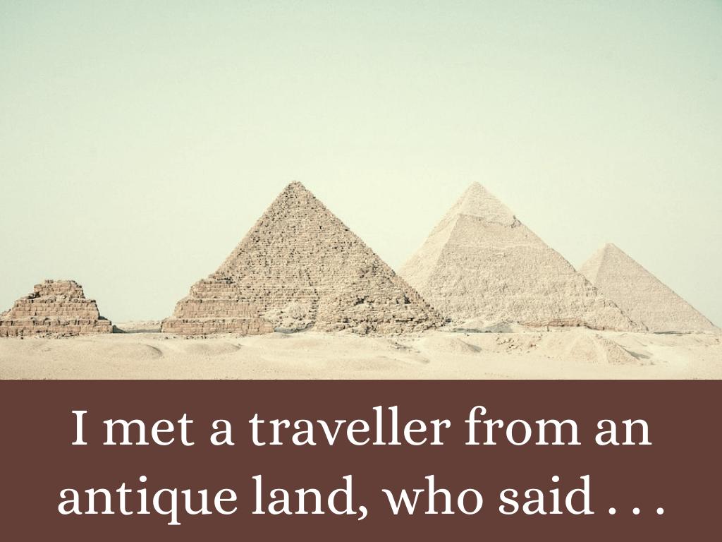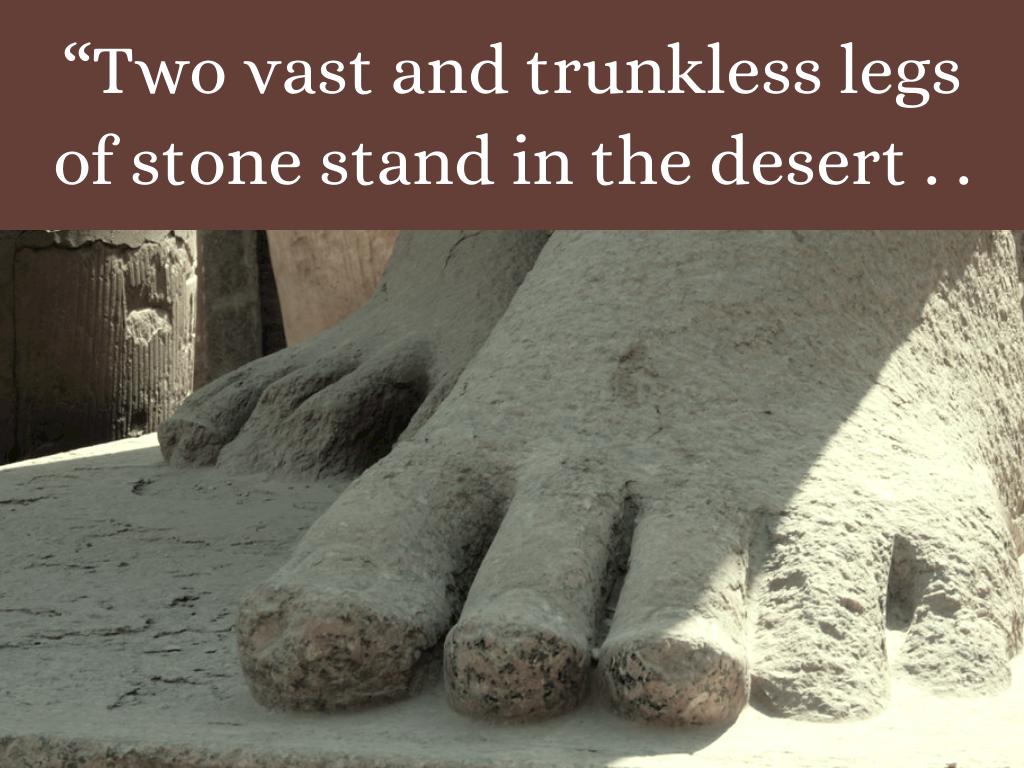 Shelley's poem "Ozymandias" famously describes a ruined statue of an ancient king in an empty desert.
