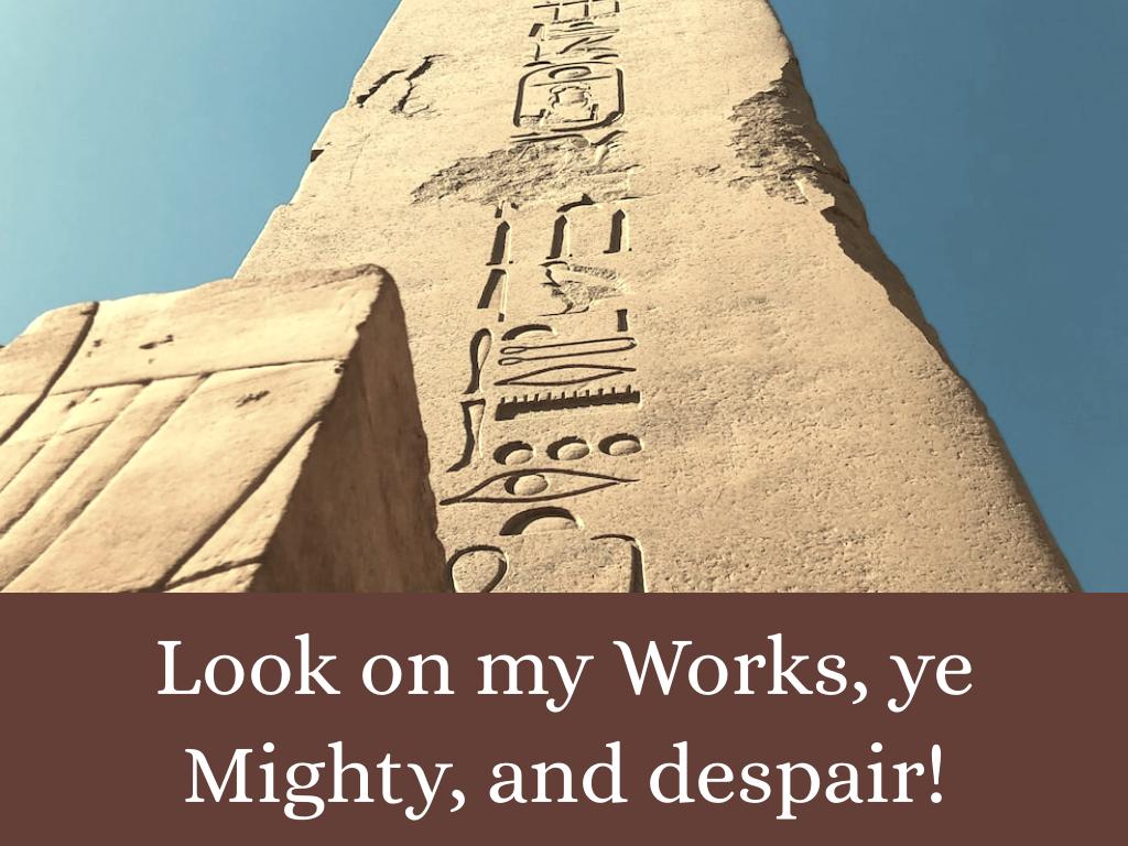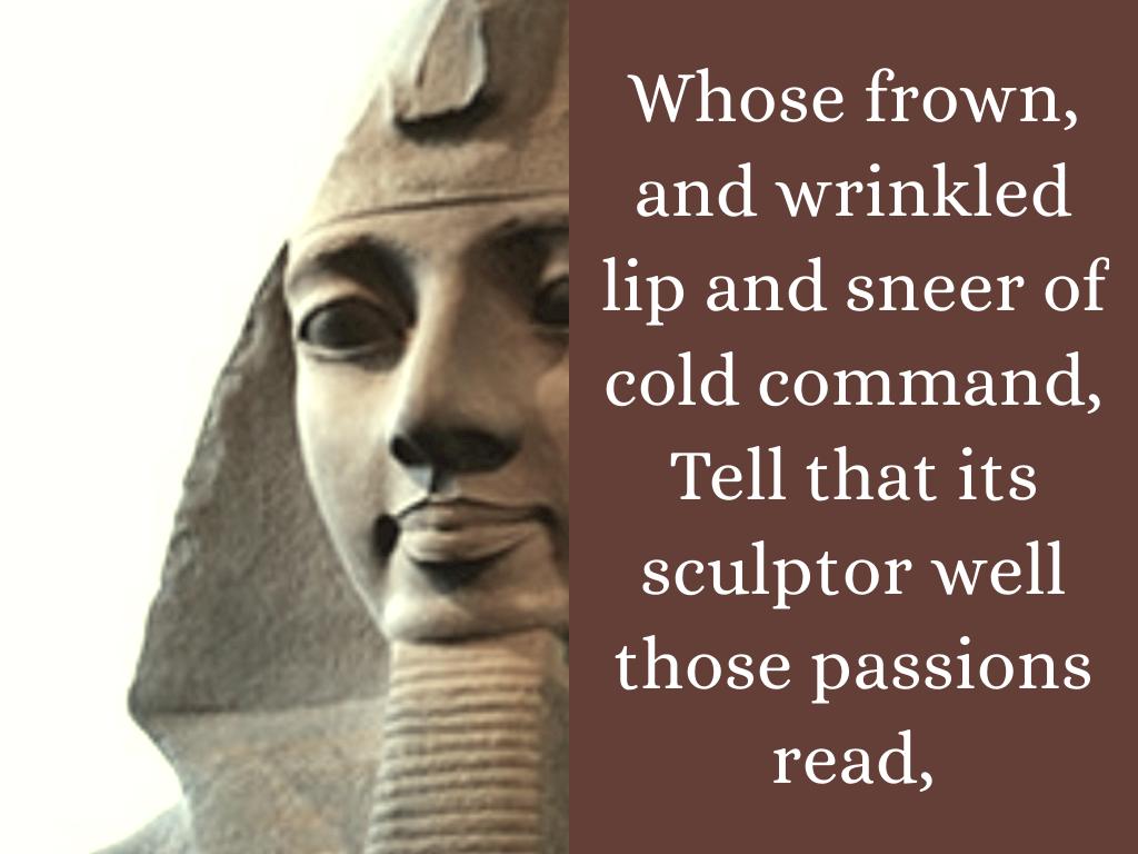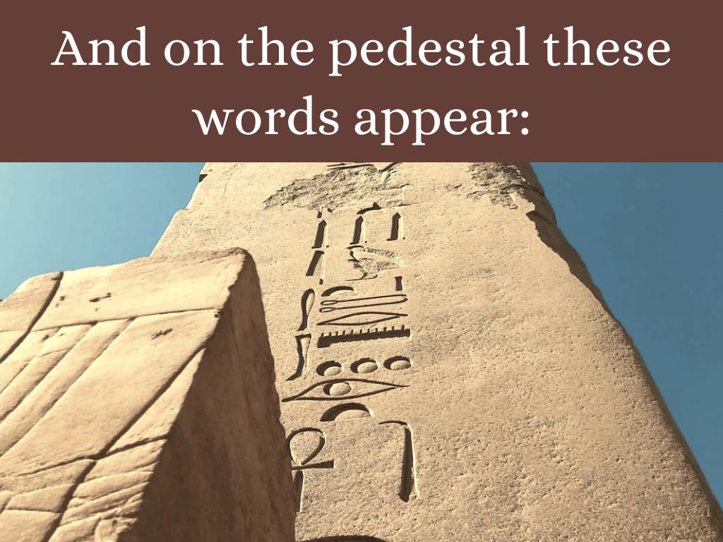 This ambiquous verse carries within its lines much hidden meaning. It hints at weighty philosophical issues; the poet uses the shattered statue to highlight the ephemeral nature of fame, vanity and power.
