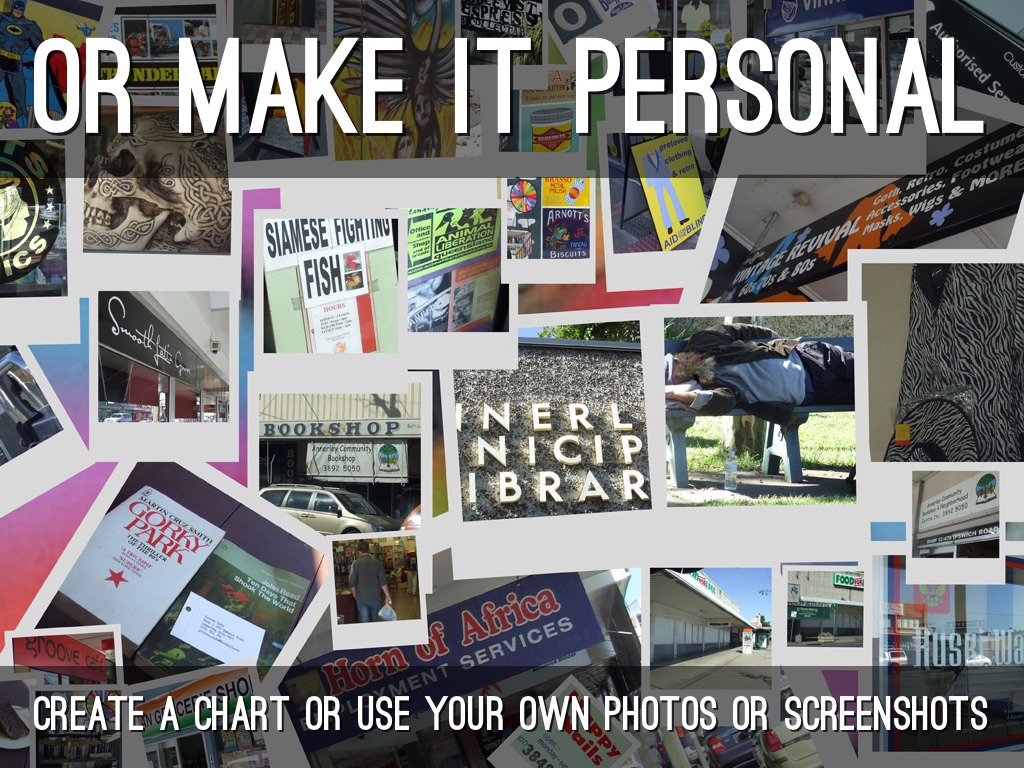 CREATE A CHART OR USE YOUR OWN PHOTOS OR SCREENSHOTS