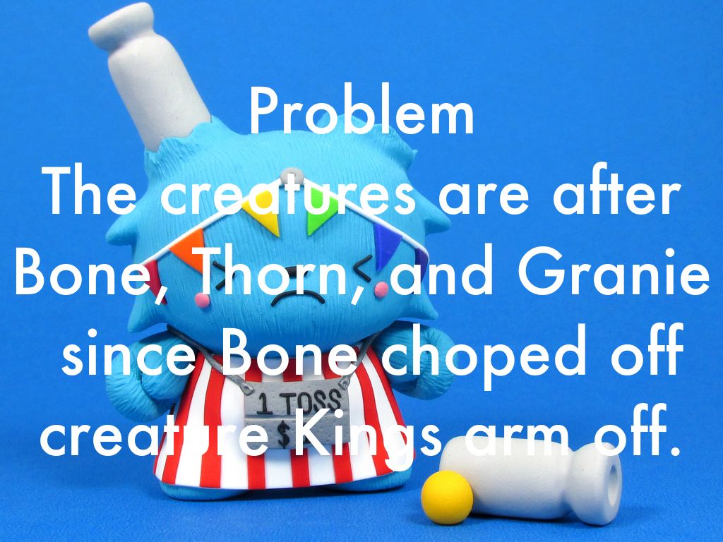 The creatures are after Bone, Thorn, and Granie since Bone choped off creature Kings arm off.