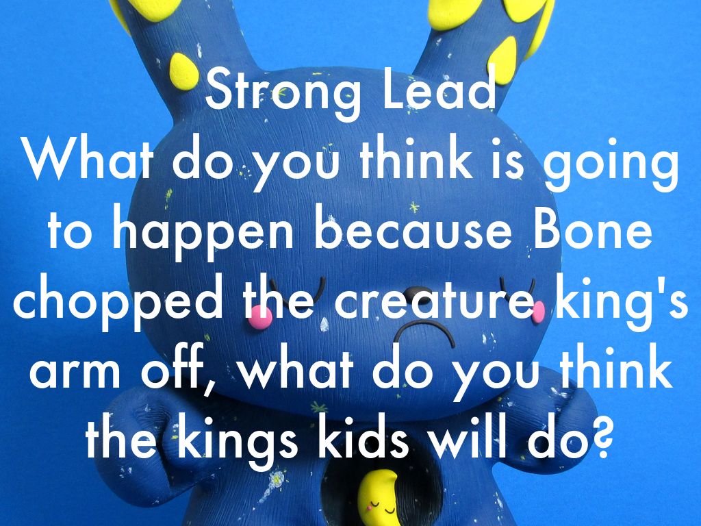 What do you think is going to happen because Bone chopped the creature king's arm off, what do you think the kings kids will do?
