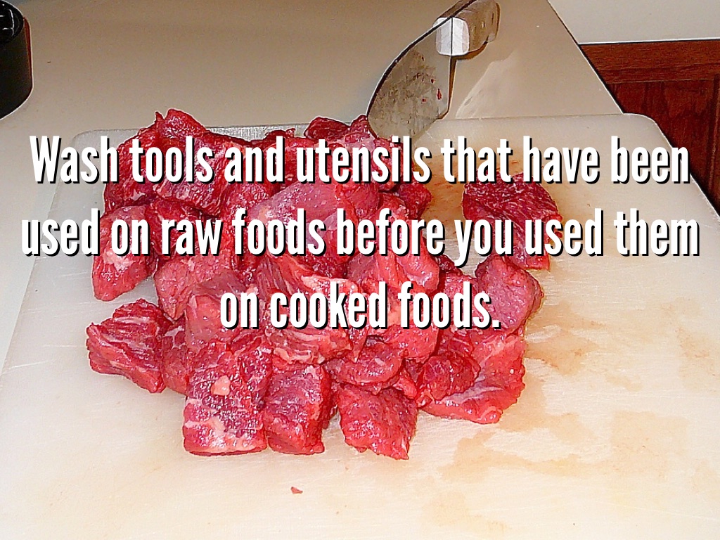 Wash tools and utensils that have been used on raw foods before you used them on cooked foods.