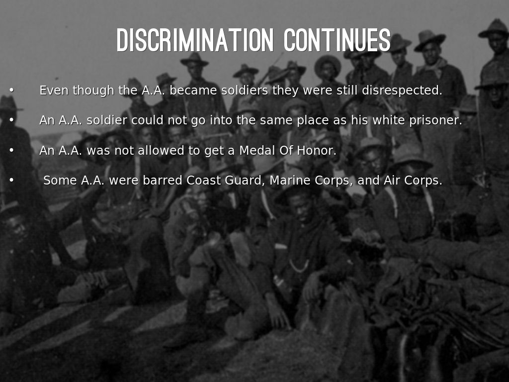 Some A.A. were barred Coast Guard, Marine Corps, and Air Corps.