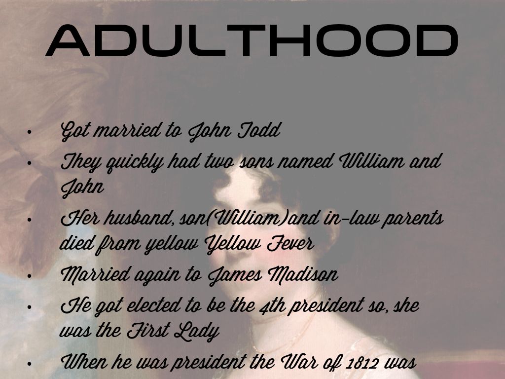 He got elected to be the 4th president so, she was the First Lady