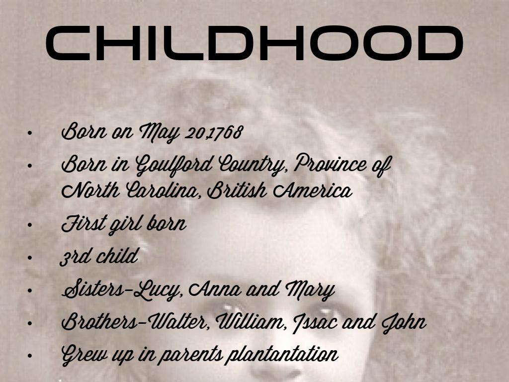 Born in Goulford Country, Province of North Carolina, British America