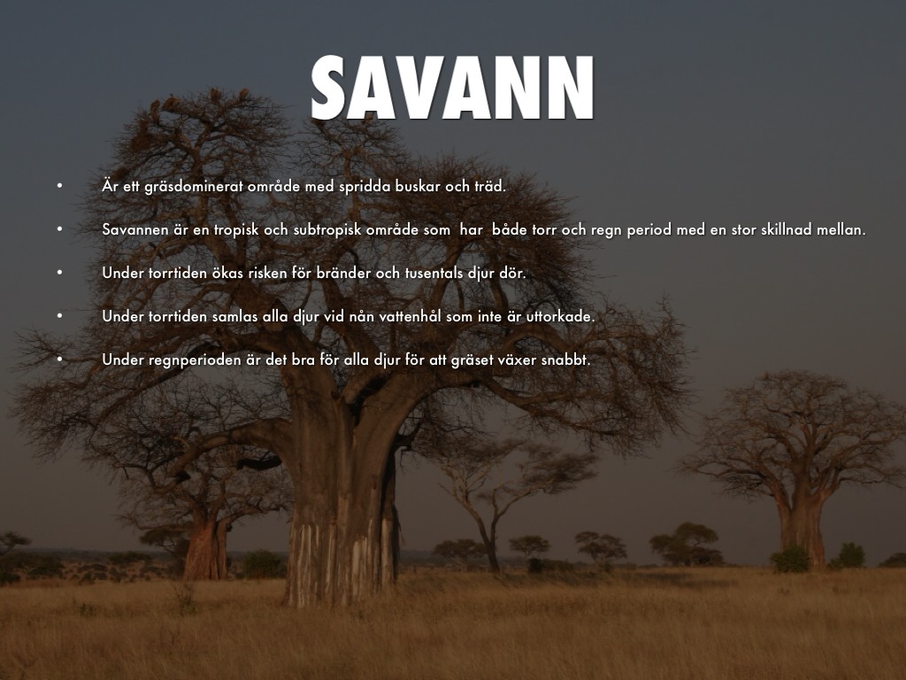 Savannen är en tropisk och subtropisk område som har både torr och regn period med en stor skillnad mellan.