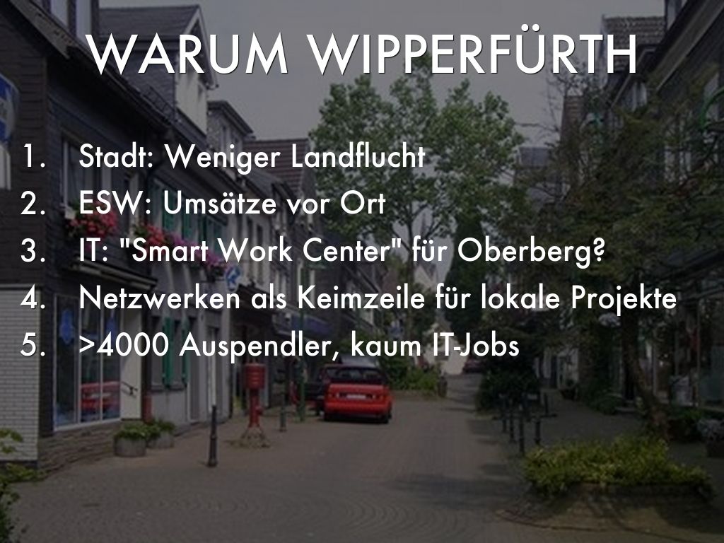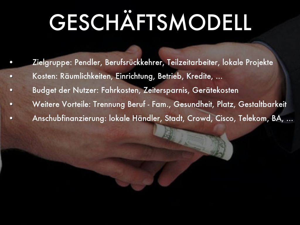 Vision für ein Gemeinschaftsbüro mit tage-/stundenweise mietbaren Telearbeits- /Telepräsenz-Plätzen - mit Unterstützung von Stadt, lokalen Händlern, Cisco, Telekom, Bundesagentur für Arbeit, Crowd, staugeplagten Großstädten (Stadt Köln?), EU Förderung ländlicher Regionen