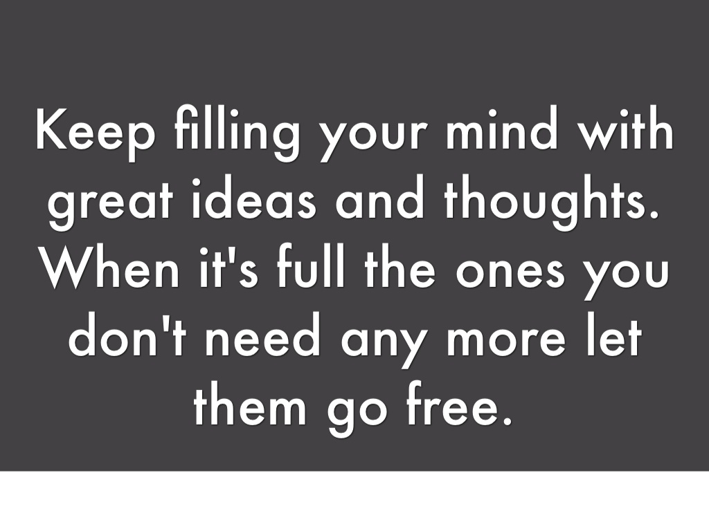 Keep filling your mind with great ideas and thoughts. When it's full the ones you don't need any more let them go free.