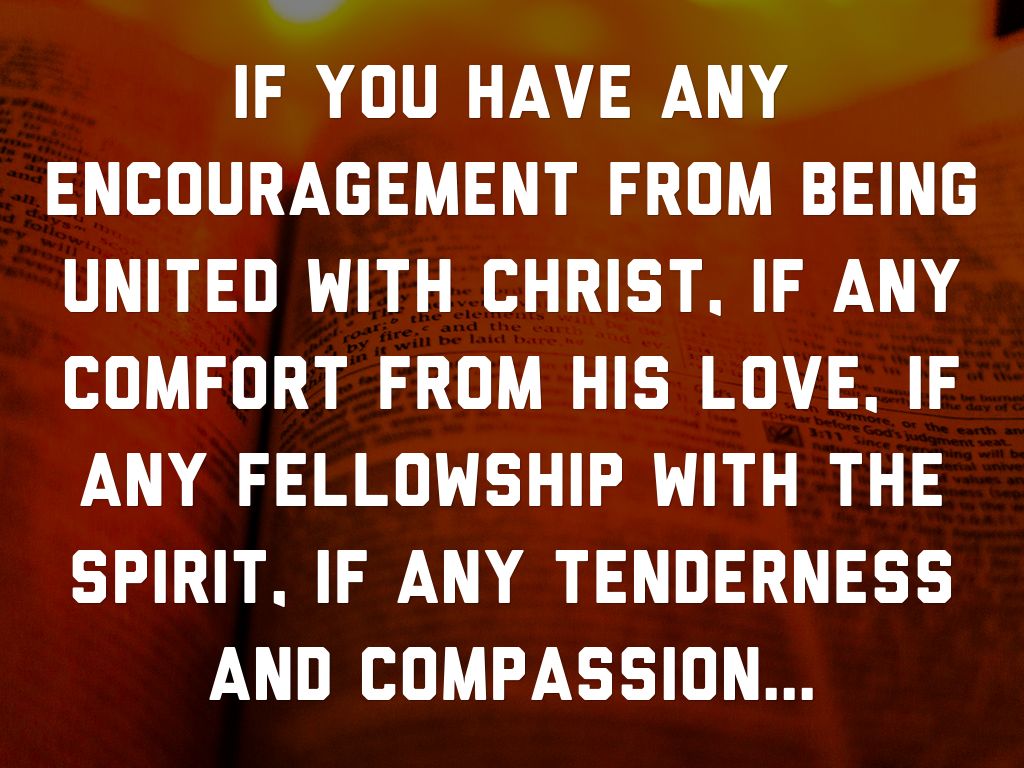 If you have any encouragement from being united with Christ, if any comfort from his love, if any fellowship with the Spirit, if any tenderness and compassion...
