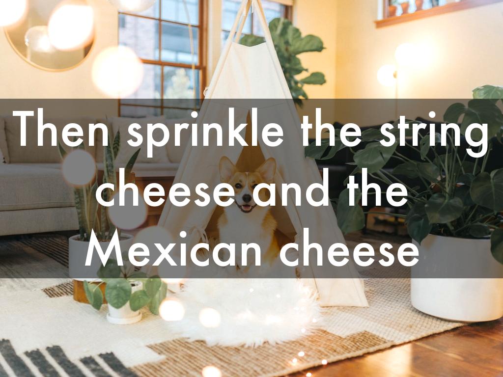 Then sprinkle the string cheese and the Mexican cheese