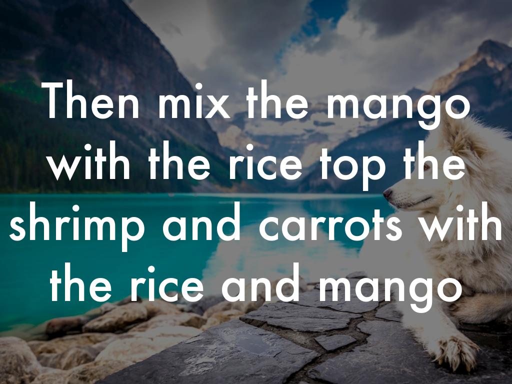 Then mix the mango with the rice top the shrimp and carrots with the rice and mango