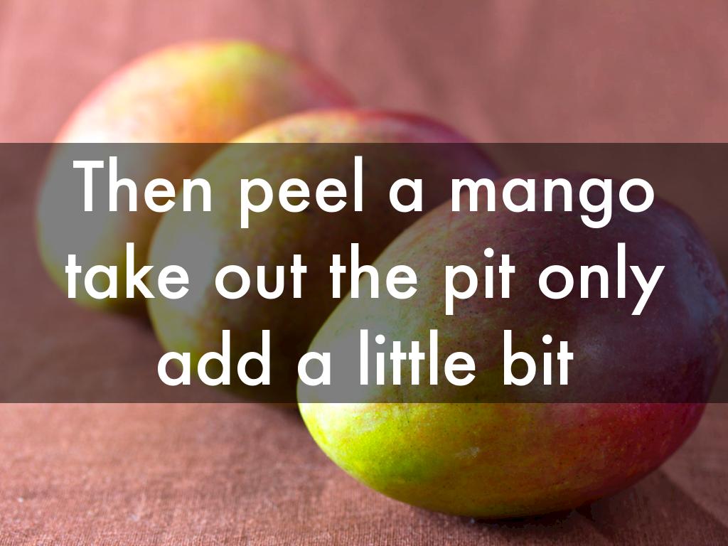 Then peel a mango take out the pit only add a little bit