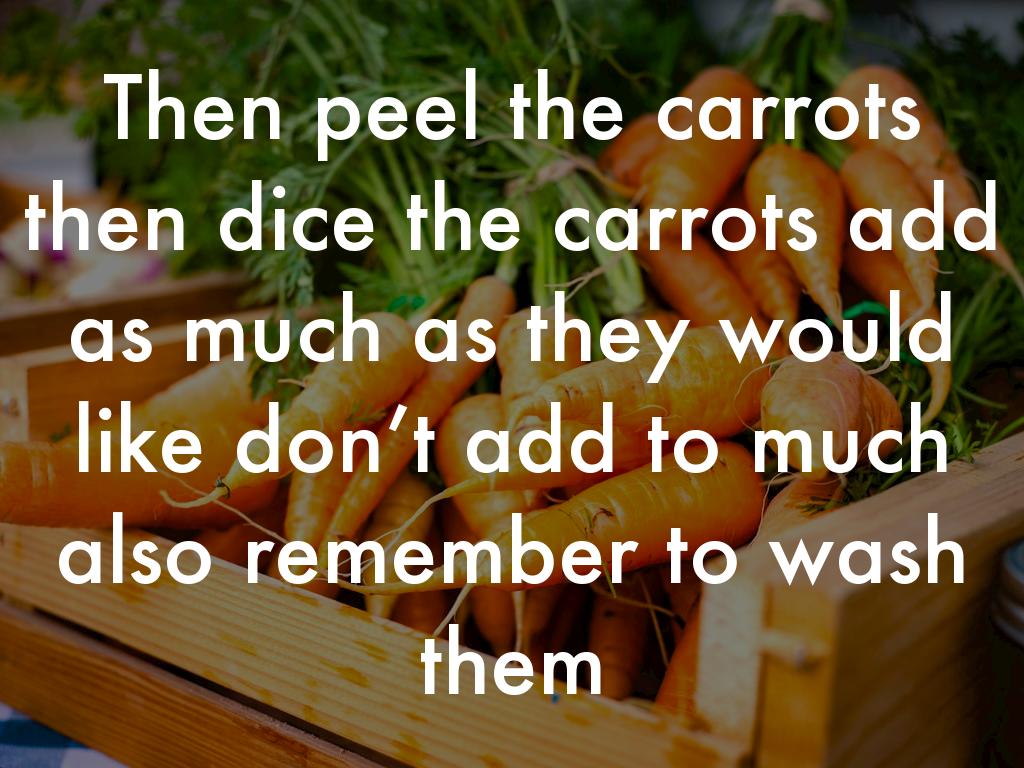 Then peel the carrots then dice the carrots add as much as they would like don’t add to much also remember to wash them