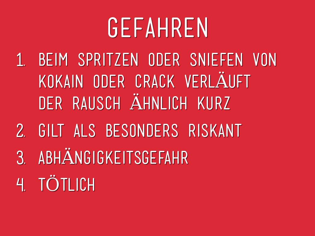 beim spritzen oder sniefen von kokain oder crack verlÄuft der rausch Ähnlich kurz