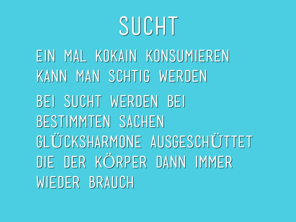 Bei sucht werden bei bestimmten sachen glÜcksharmone ausgeschÜttet die der kÖrper dann immer wieder brauch