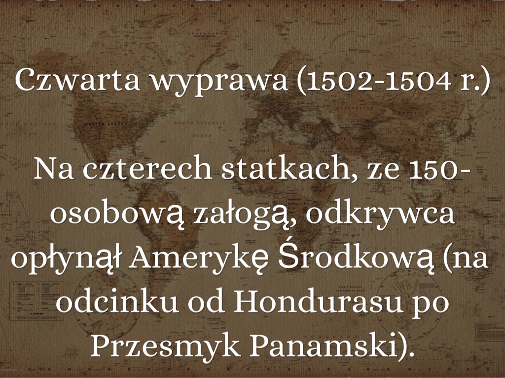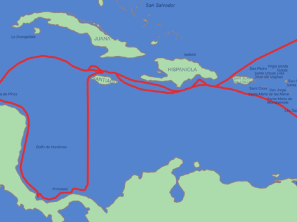 Na czterech statkach, ze 150-osobową załogą, odkrywca opłynął Amerykę Środkową (na odcinku od Hondurasu po Przesmyk Panamski).