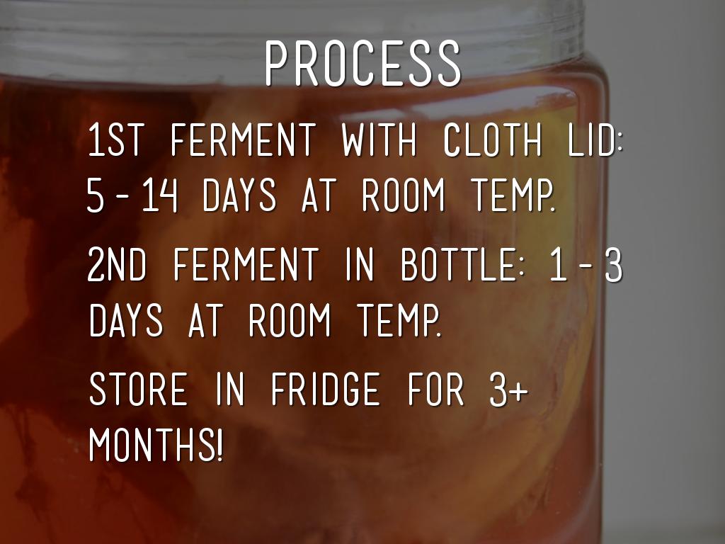 1st ferment with cloth lid: 5-14 days at Room temp.