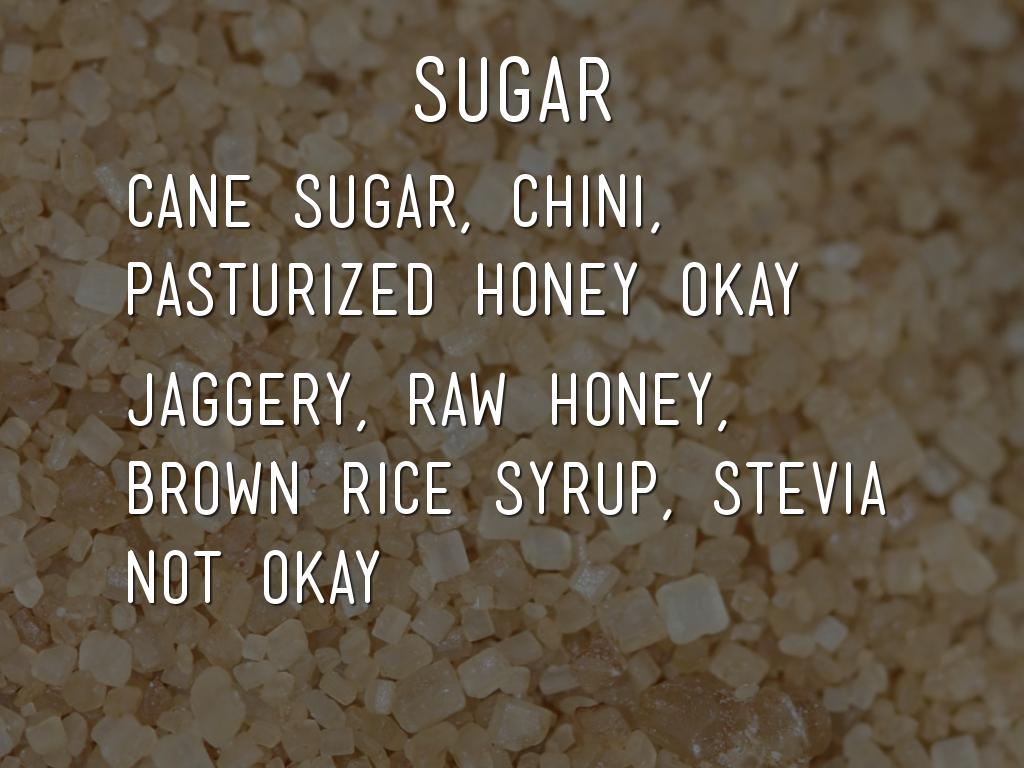 jaggery, raw honey, brown rice syrup, stevia not okay