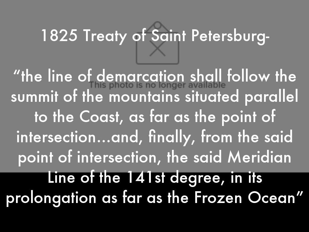 “the line of demarcation shall follow the summit of the mountains situated parallel to the Coast, as far as the point of intersection…and, finally, from the said point of intersection, the said Meridian Line of the 141st degree, in its prolongation as far as the Frozen Ocean”