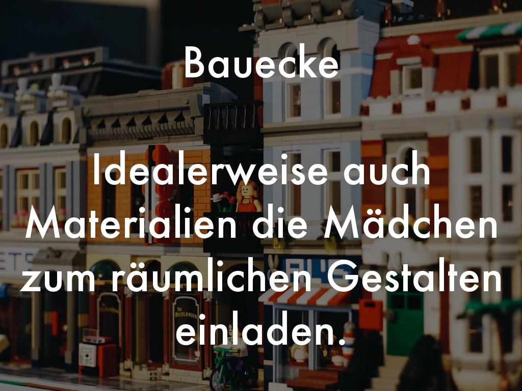 Idealerweise auch Materialien die Mädchen zum räumlichen Gestalten einladen.