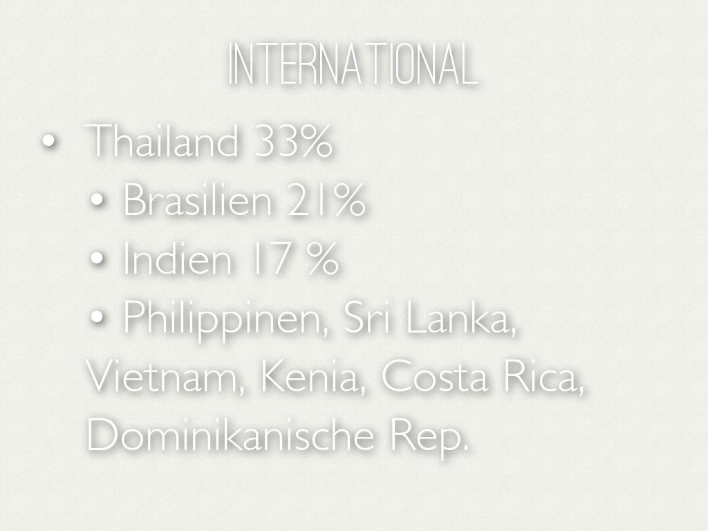 Thailand 33% • Brasilien 21% • Indien 17 % • Philippinen, Sri Lanka, Vietnam, Kenia, Costa Rica, Dominikanische Rep.