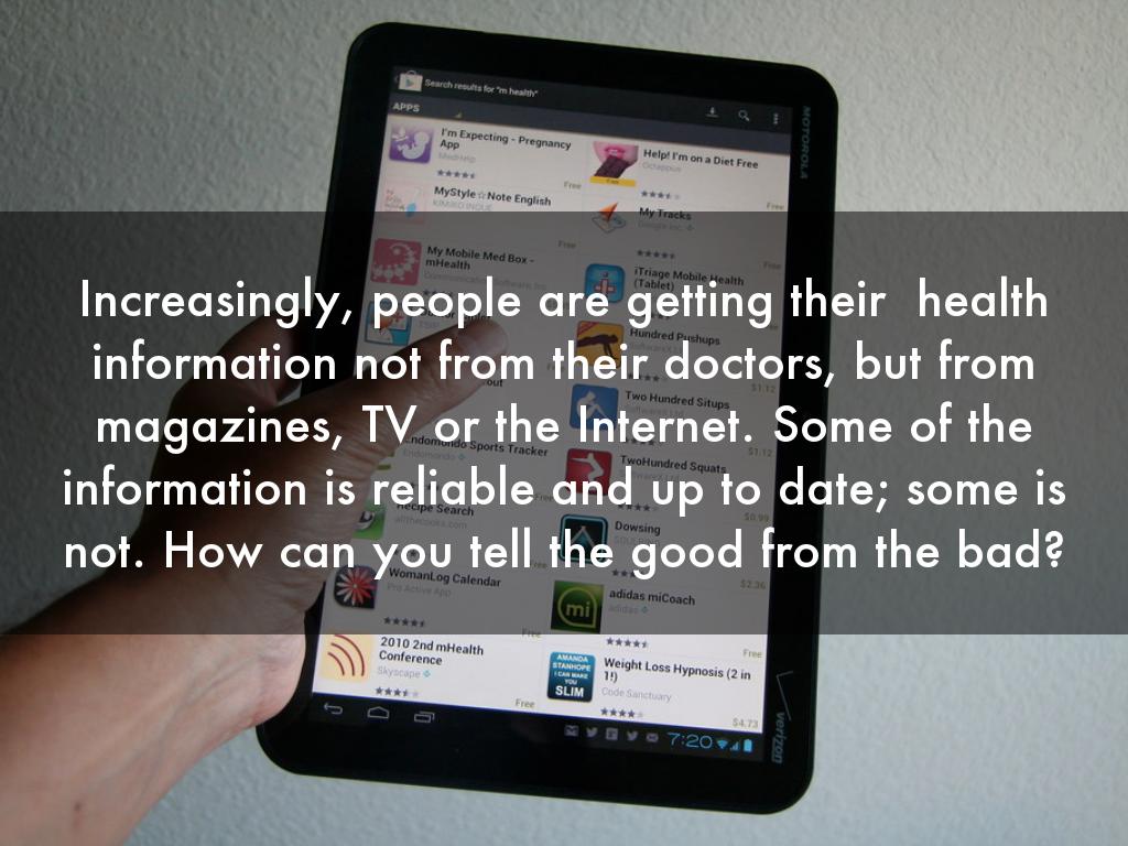 Increasingly, people are getting their health information not from their doctors, but from magazines, TV or the Internet. Some of the information is reliable and up to date; some is not. How can you tell the good from the bad?
