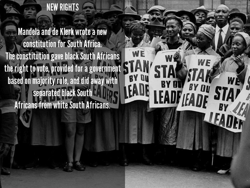 Mandela and de Klerk wrote a new constitution for South Africa.