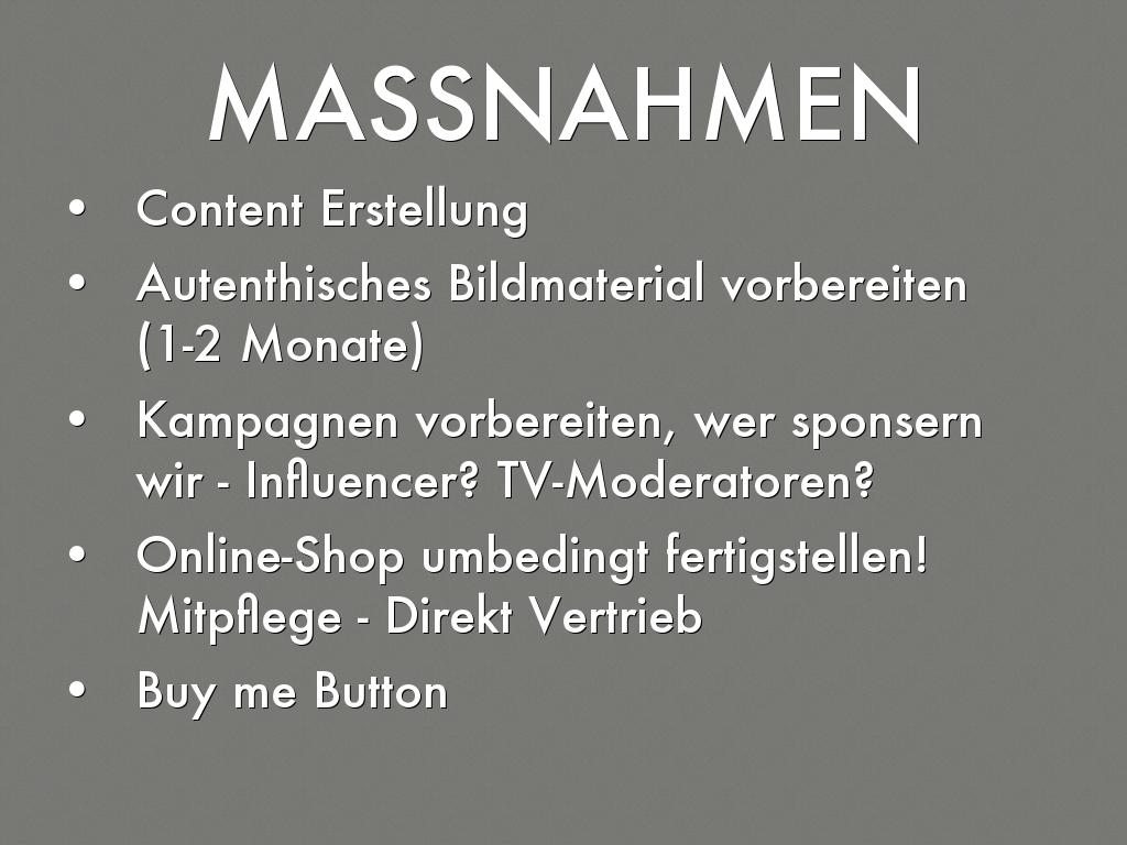 - Kampagnen vorbereiten, wer sponsern wir - Influencer? TV-Moderatoren?