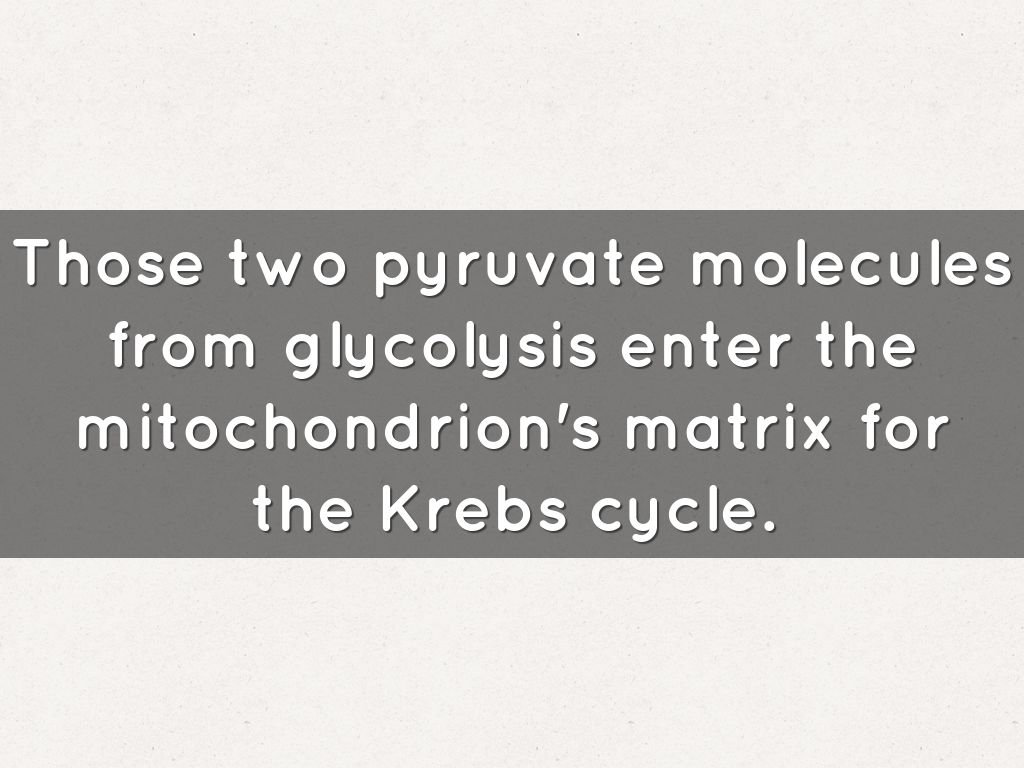 Those two pyruvate molecules from glycolysis enter the mitochondrion's matrix for the Krebs cycle.